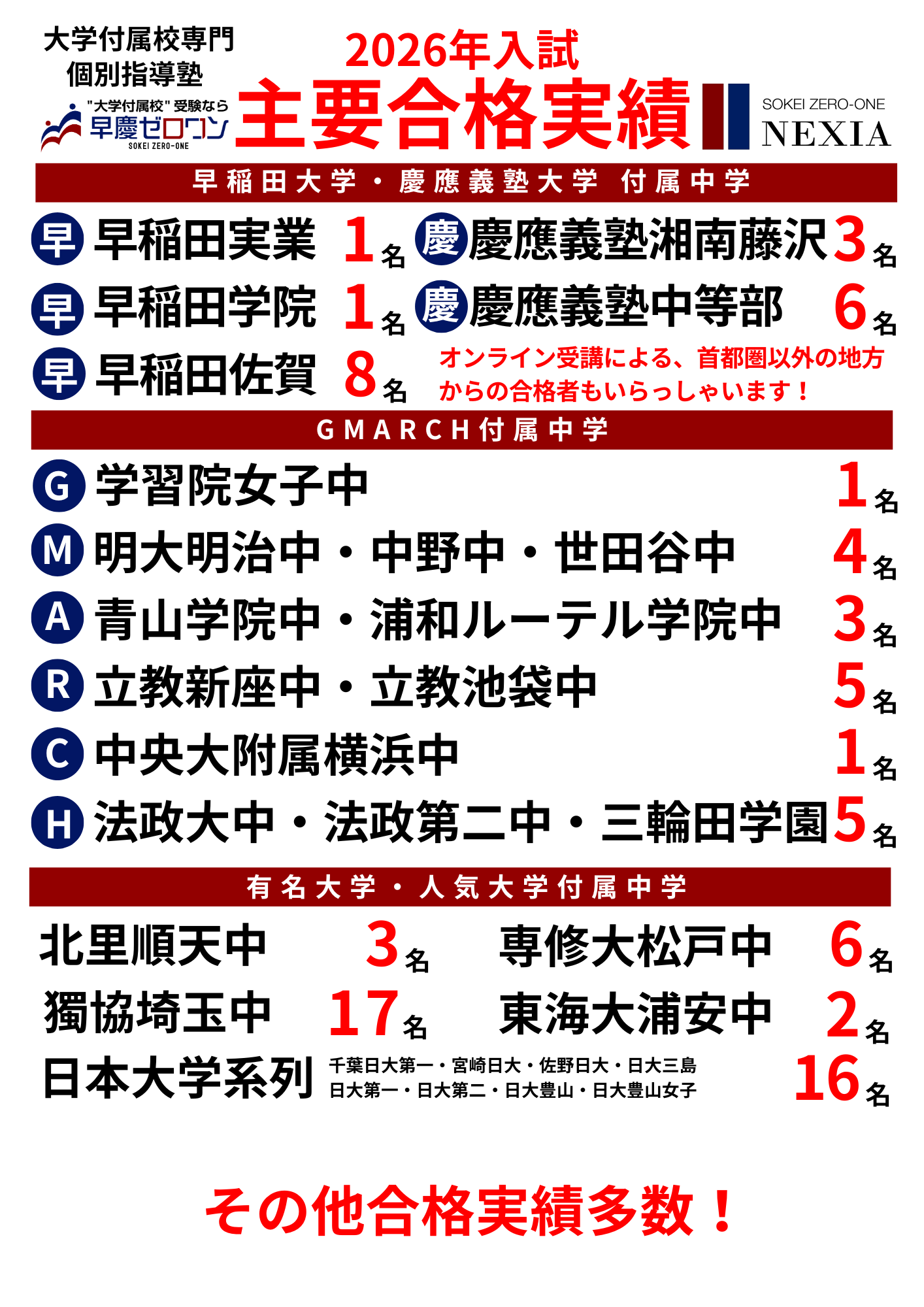 毎年GMARCHレベル以上の大学付属校にも合格を輩出!!