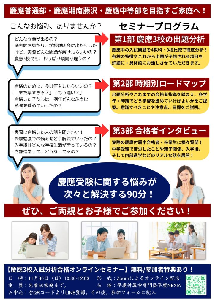 慶應中学3校 入試分析合格オンラインセミナー